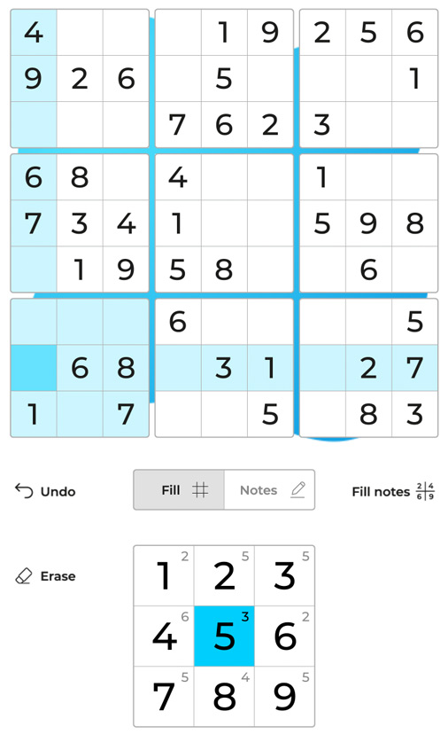 New to Sudoku? You can automatically fill in the notes on the board so that you can focus on solving the puzzle. This is a helpful tool for when you’re stuck and in need of speedy assistance.