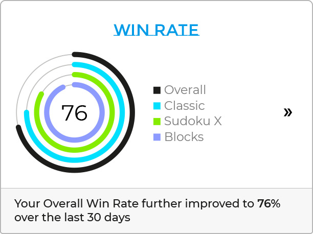 Keep track of your performance and progress with detailed statistics presented in an intuitive way and compare yourself to other Sudoku players around the globe.